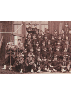 Grande photo souvenir d'une compagnie du 79e Régiment d'infanterie de Nancy, période 3e République. Le 79e RI était en garnison à Nancy de 1879 à 1914. Photographie de très belle qualité, montée sur plaque carton pour encadrement, nombreux détails visibles. Format 31 x 43,6 cm. Petites taches...